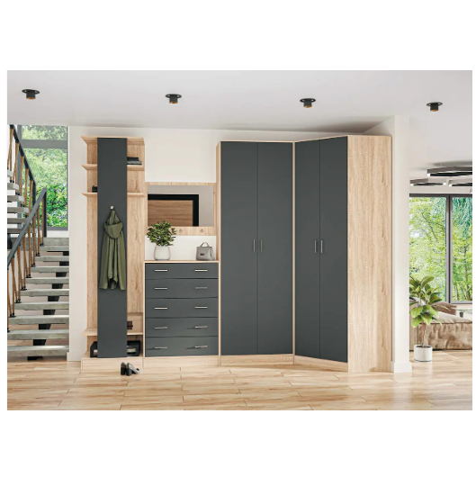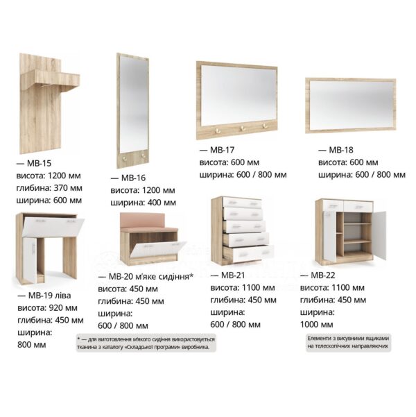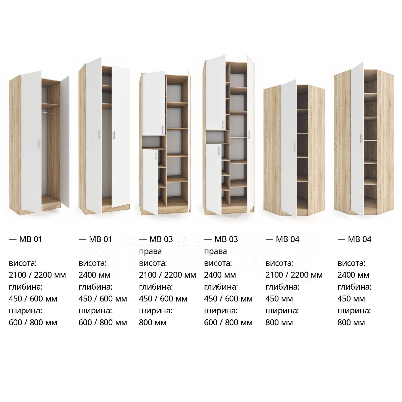 Вішак в коридор МВ-10 висотою 210/220 і 240 см. Виготовляється з ламінованого ДСП товщиною 16мм, в різних варіантах кольорів, як комбінації так і в одному кольорі. На вішаку багато простору для вашого верхнього одягу. Відноситься до модульної системи в коридор МВ, яка складається з 22 елементів. За рахунок можливості вибору кольору, розмірів і комплектації секції, ви можете вибрат підходящий комплект для вашого коридору.