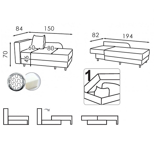 Спальне місце : 194х82 см.