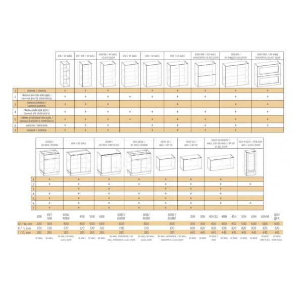 З представлених елементів модульної кухні «Гамма » Ви можете зібрати кухню необхідних Вам розмірів та комплектації, а також будь-який з елементів кухні придбати окремо