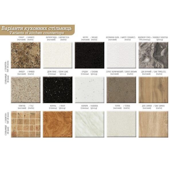 Ви можете замовити кухню “Гамма у стандартній комплектації”. Вартість кухні нестандартної комплектації уточнюйте у менеджера.Можливі різні варіанти комплектації кухонних елементів