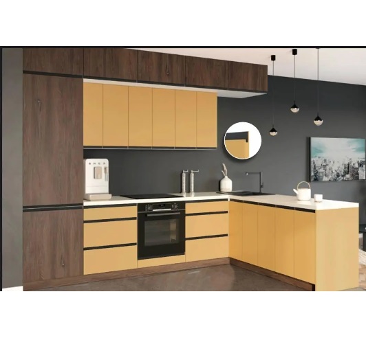 Чорна інтегрована ручка, J-профіль інтегрований в ДСП фасад, товщиною 18 мм.