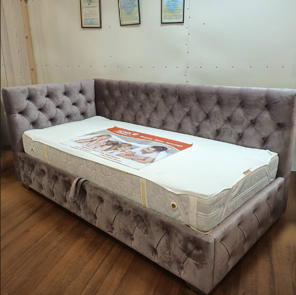 омфортне ліжко з м’яким узголів’ям та ґудзиковими утяжками.
