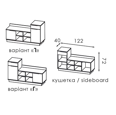 : довжина – 122 см., глибина – 40 см., висота – 72 см.