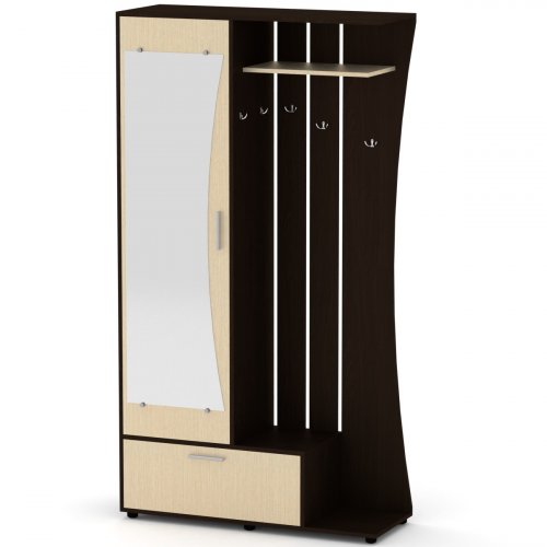 Передпокій Юлія – ​​від виробника Компаніт – стильний та практичний. Виготовлений ​​за сучасними технологіями. Передпокій включає: вішалку відкритого типу з полицею, тумбу для взуття і шафу з верхньою полицею і зі штангою для одягу, на фасаді дверей якого розташоване дзеркало. Буде відмінним доповненням Вашого передпокою.