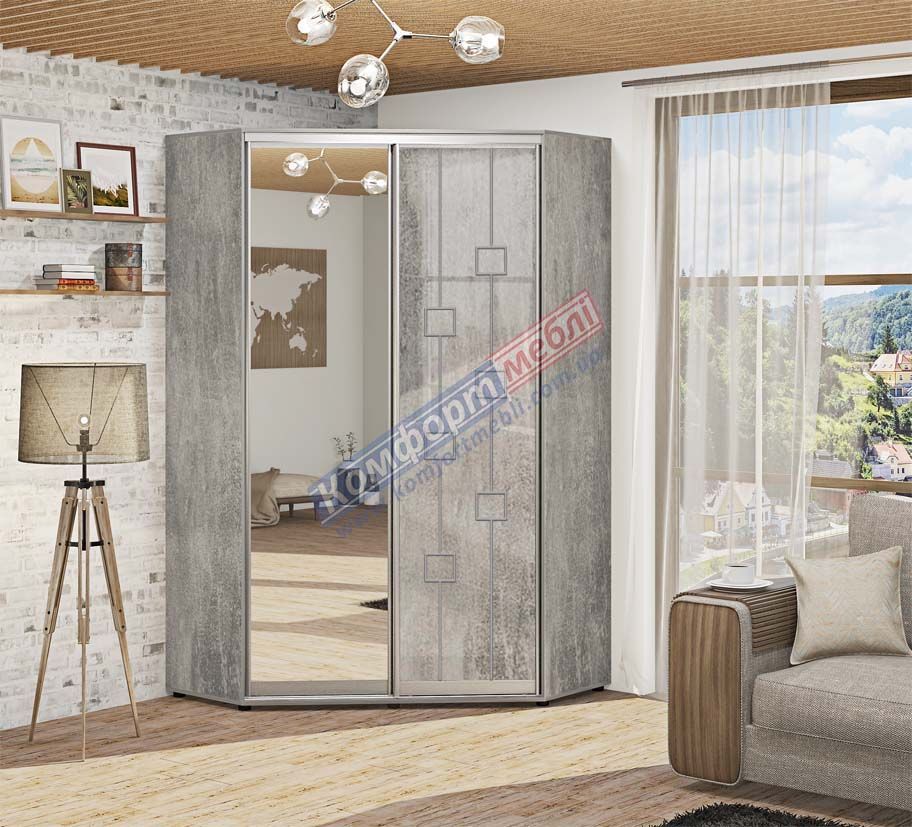 в Кутова шафа-купе 1,1/1,3 м “Модерн глянець” з дзеркалом”Комфорт”