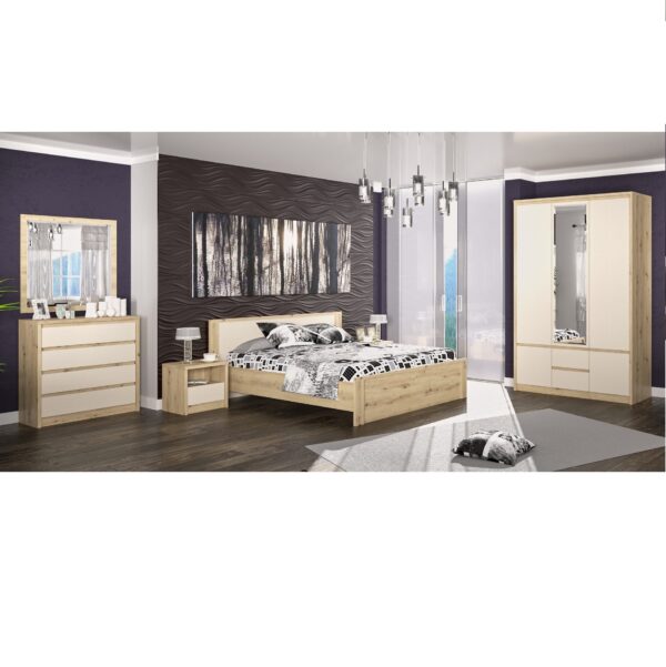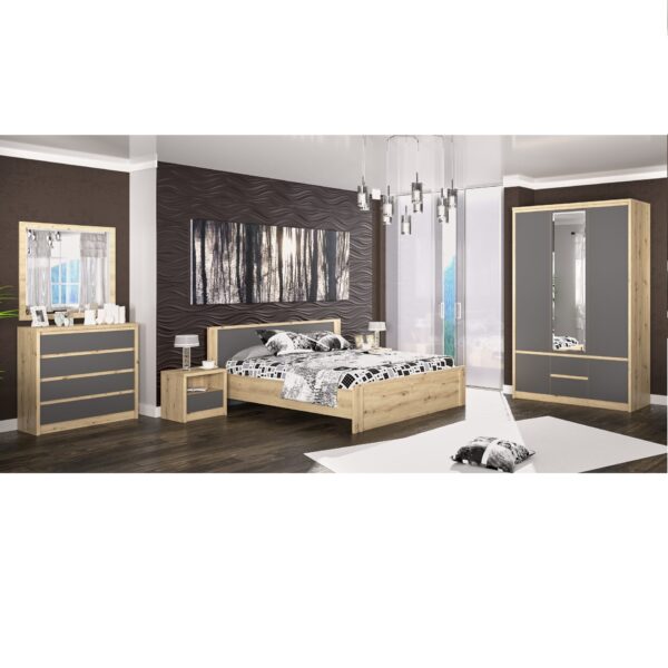 Спальня «Домініка» — це практичні, та зручні , створені талановитими майстрами фабрики «Меблі Сервіс». Гарнітур ефективно поєднує в собі сучасний дизайн із зручністю та функціональністю. Ці меблі можна вважати універсальними, оскільки вони лаконічно вписуються в найрізноманітніші дизайнерські напрямки. Контрастне поєднання кольорів Дуб Артісан і Сірий красиво підкреслюють суворо прямі лінії контурів меблів, виконаних в мінімалістичному стилі.