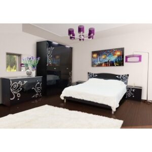 Це модульна спальня, яка має в своєму складі такі елементи, як: двомісне ліжко, тумбочка, дзеркало, комод, трюмо, класичний орної шафа.