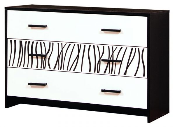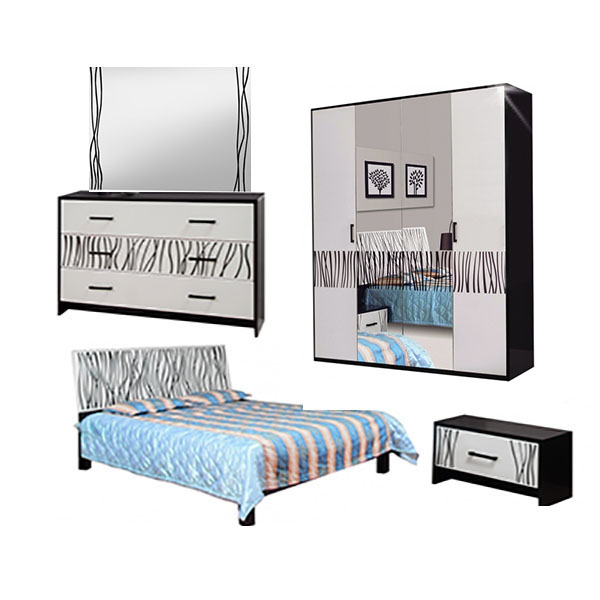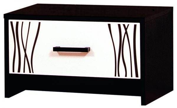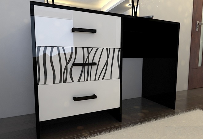 Модульна спальня виготовлена з високоякісних матеріалів: корпус та фасад – ДСП. Кольорова гама: корпус – чорний лак, фасад – білий нейла лак, білий олімпія лак. Елементи з висувними ящиками на направляючих повного висування.