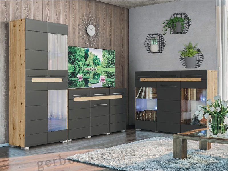 Фасади: графіт (МДФ), білий глянець(МДФ), антрацит (ДСП).