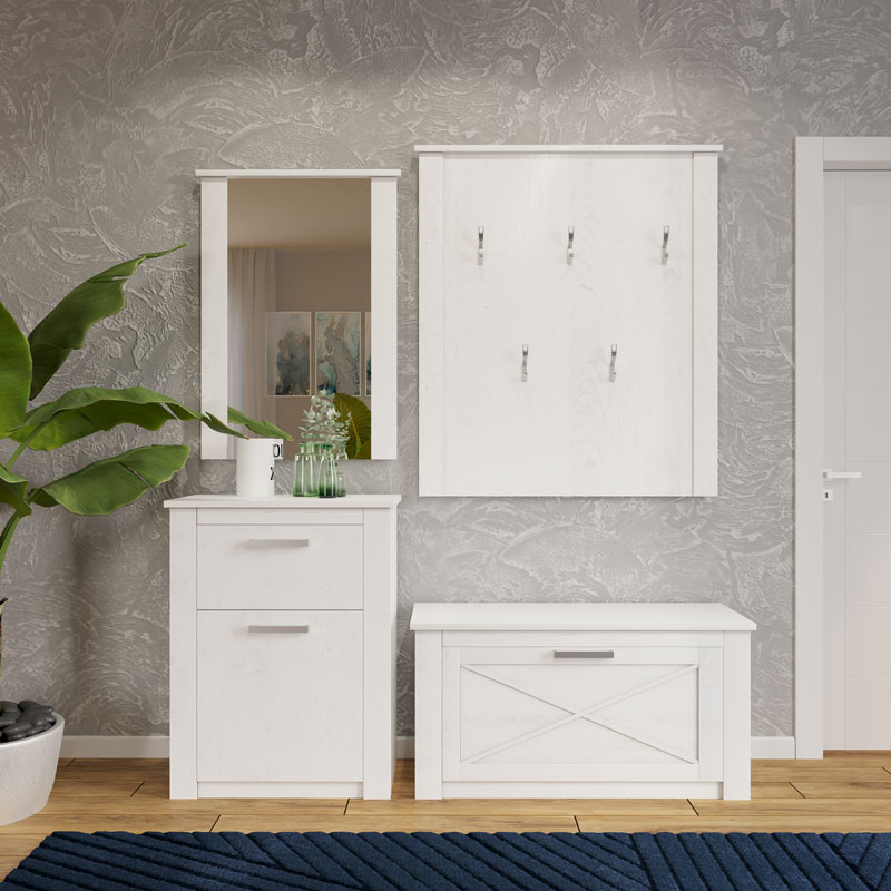Передпокій може складатися з невеликої, але місткої взуттєвї тумби, вішака та шафи, а також дзеркала та будь-якого комоду із системи. Дзеркала, доречі, теж максимально адаптовані для комплектації з будь-яким комодом та тумбою із модульної системи.