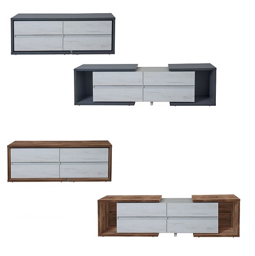 Тумба під телевізор у вітальню розсувна ТВ3 Комфі Модерн – стильна та сучасна новинка від меблевої фабрики Модерн. Дана модель стане родзинкою Вашої вітальні. Розкладний механізм дозволяє збільшити довжину тумби та відповідно корисну площу для зберігання всіх необхідних речей. Універсальна та зручна в експлуатації тумба.