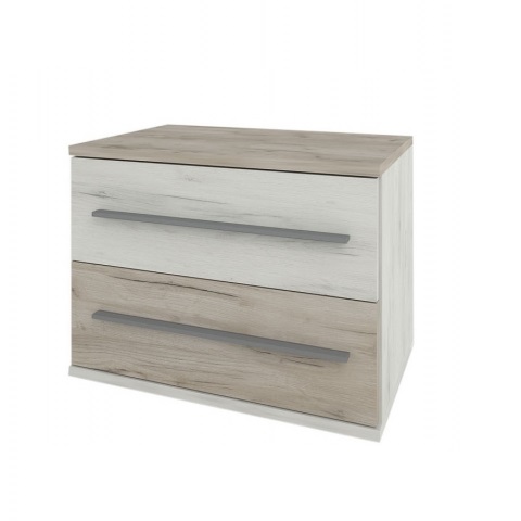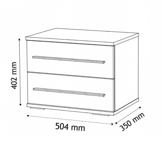 Тумба приліжкова Мілана – додатковий елемент для зберігання в спальні. Тумбочка має дві шухлядки. Головними особливостями моделі є прості геометричні форми, комбіновані кольори з природною текстурою дерева і довгі ручки сріблястого кольору.