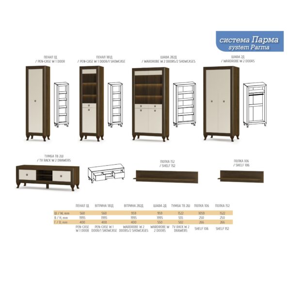 ГоловнаКомоди та ТумбиТумби під TVТумба ТВ 2Ш “Парма” модульна система МебльСервіс