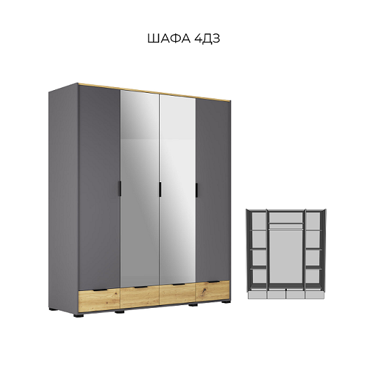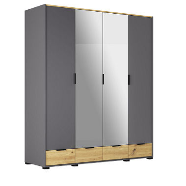 Шафа 4 ДЗ “Каміла” не тільки зачаровує сучасною витонченістю, але і допоможе навести порядок в кімнаті!  Шафа представлена в неповторному контрастному поєднанні світлого дуба артизан і темного графіту.Надзвичайно гармонійне поєднання кольорів, строгі і прямі лінії, виразні фасади з натуральною фактурою дерева, а також цікаві ручки підкреслюють чудовий елегантний дизайн стриманої розкоші всієї шафи і дозволять вписати його в будь-які сучасні інтер’єри.