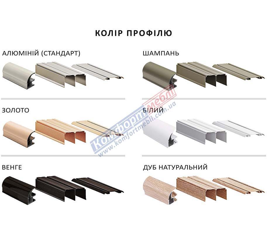 Алюміній          Золото        Венге          Шампань       Білий        Сонома