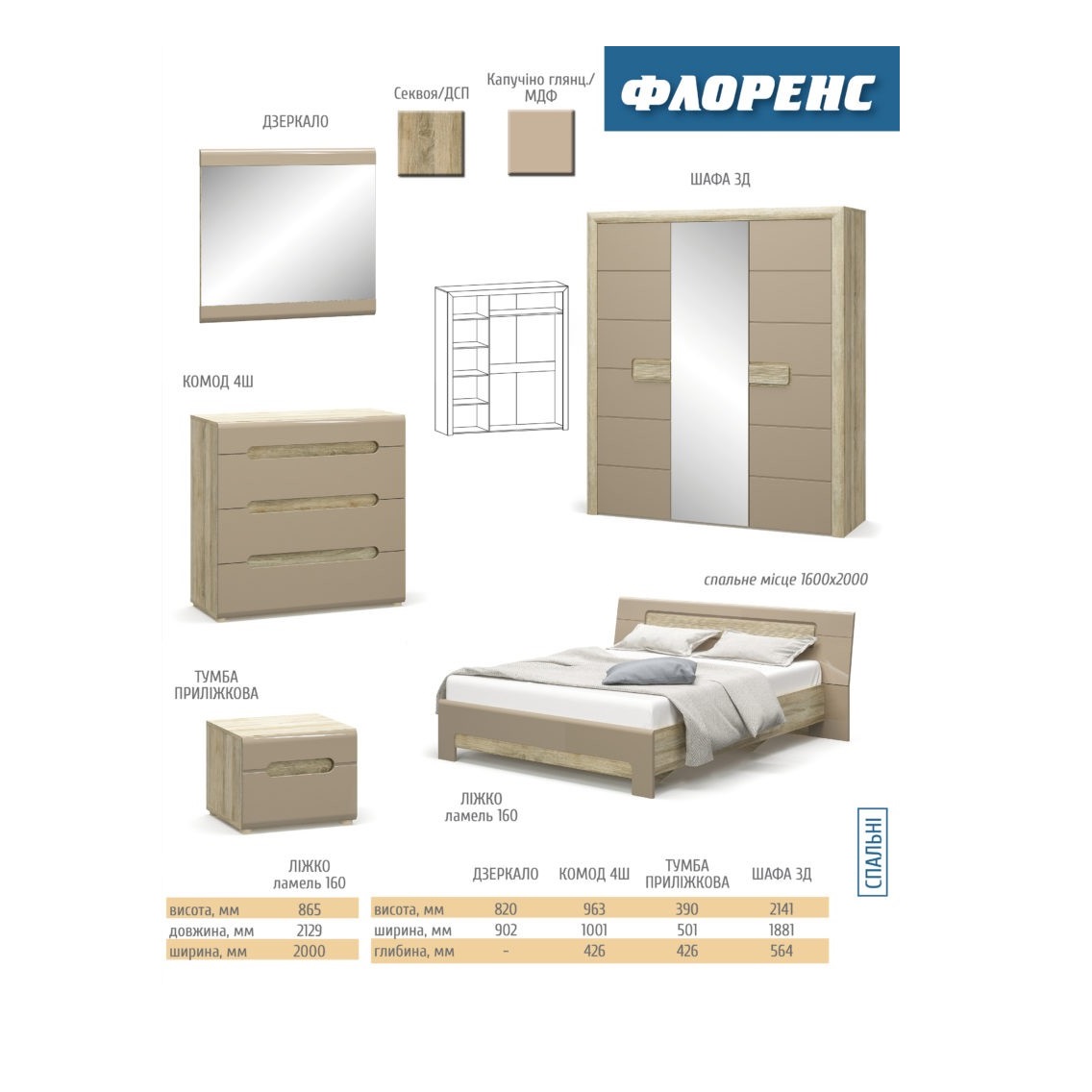 ГоловнаСпальніШафи для спаленьШафа 3Д “Флоренс” МебльСервіс